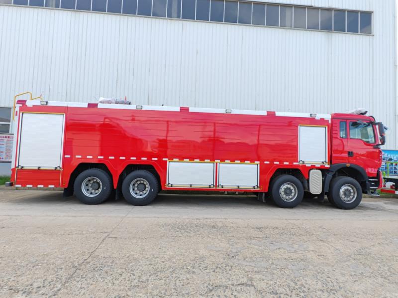 Le camion de pompiers Sinotruk HOWO TX de 22 m³, équipé d'un réservoir d'eau ultra-large de 22 tonnes, est principalement utilisé pour la lutte contre les incendies de grande envergure dans les immeubles urbains de grande hauteur, les parcs industriels et autres lieux, fournissant un approvisionnement continu en eau aux équipements de lutte. Équipé d'un système de mousse, il est efficace contre les incendies de pétrole. Sa pompe à eau haute pression (80 l/s) établit rapidement un réseau d'alimentation en eau, permettant ainsi le fonctionnement d'équipements spécialisés tels que les nacelles élévatrices.