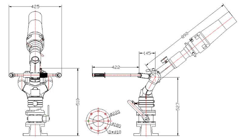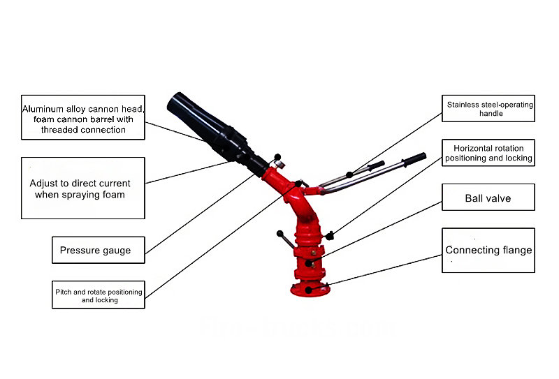 Le cylindre de mousse peut être retiré pour servir de canon à incendie, offrant à la fois des fonctions de projection et de courant continu. Canon à mousse pour camion de pompiers PL24 Il convient aux camions de pompiers et aux applications dans les industries pétrolière, chimique et portuaire.