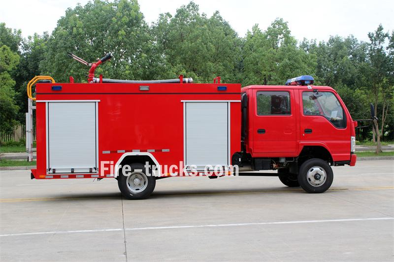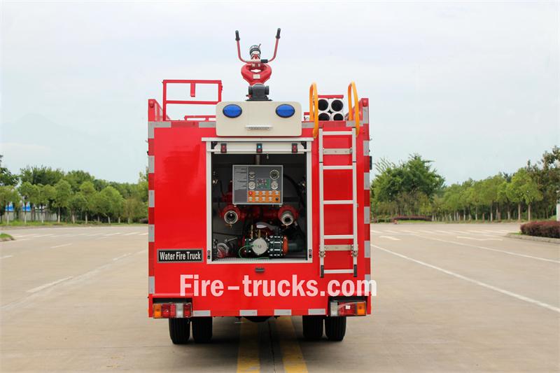 Ce camion-citerne de pompiers Isuzu de 3 m³ est construit sur un châssis Isuzu 100P 4x4 double cabine à empattement de 3 360 mm. Il est équipé d'un moteur Isuzu 4KB1-TCG60 et d'une boîte de vitesses MSB à 5 rapports. La partie avant de la superstructure abrite le compartiment des équipements, la partie centrale contient une citerne d'eau de 300 litres en acier au carbone et la partie arrière est la salle des pompes, équipée d'une pompe à incendie CB10/60-XZ, d'un panneau de commande, de tuyaux d'incendie, de matériel de lutte contre l'incendie, etc. Un canon à eau PS8/30W est monté sur le toit.