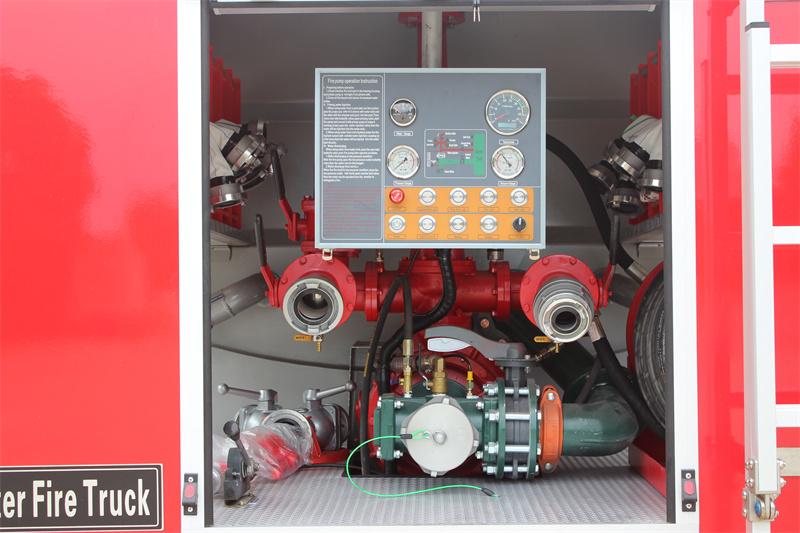Panneau de contrôle: Situé dans la salle des pompes, il intègre un indicateur de niveau d'eau, un manomètre, un vacuomètre, un tachymètre, un frein d'urgence, un éclairage de la salle des équipements, un éclairage de la salle des pompes, un feu latéral, un feu arrière, un interrupteur d'amorçage, un interrupteur d'alimentation principal, une commande électronique des gaz et d'autres boutons ; les instructions de fonctionnement de la pompe à incendie, un schéma de la tuyauterie du réservoir d'eau, etc. L'interface est intuitive, facilitant la surveillance et l'utilisation en temps réel des boutons par les pompiers.