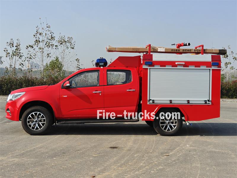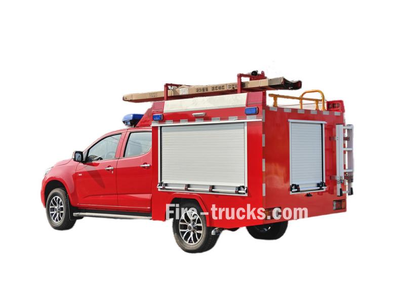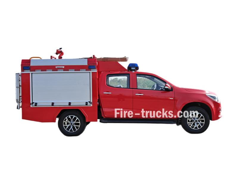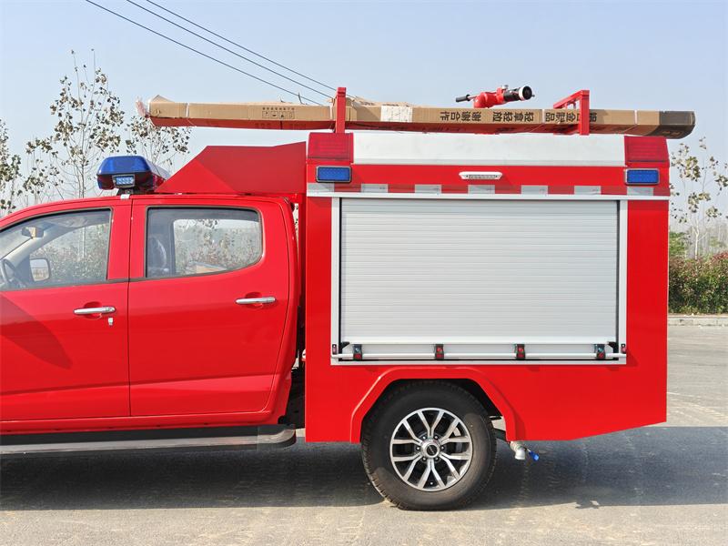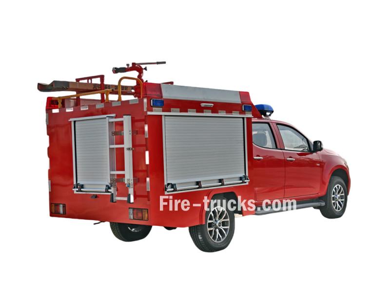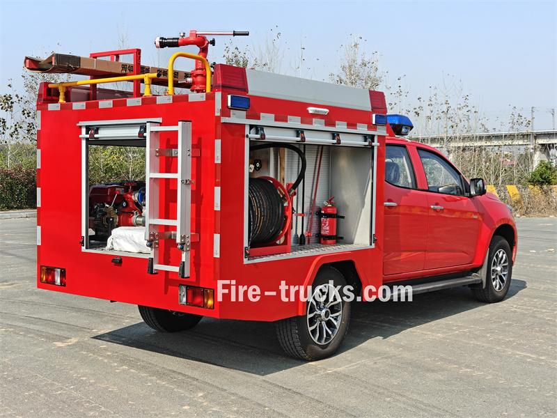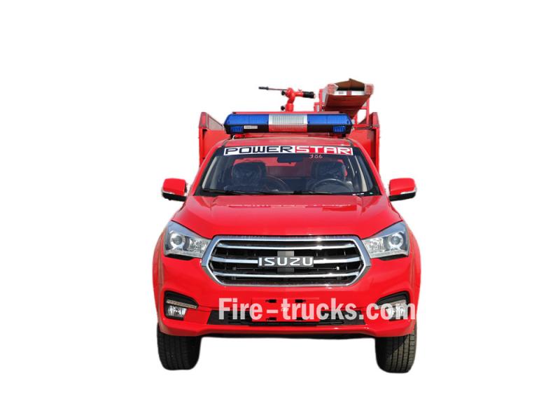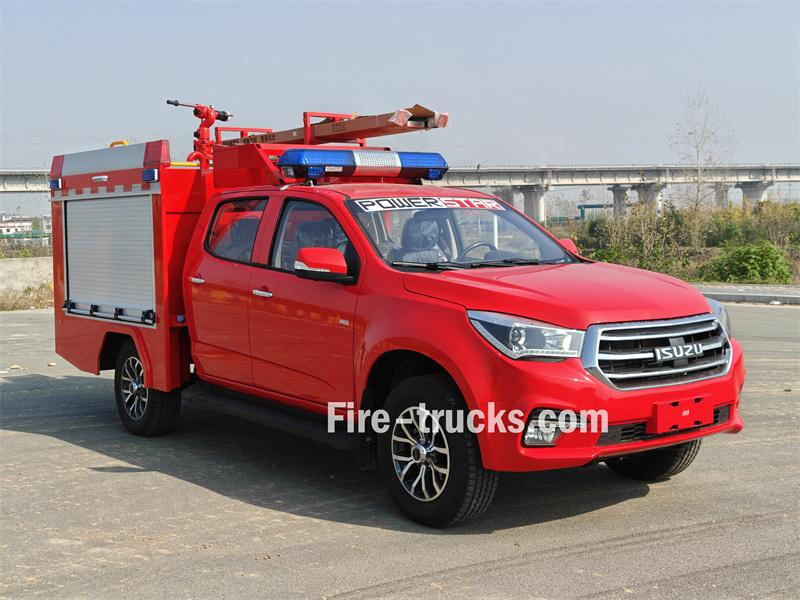 ≥50 mCe Camion de pompiers Isuzu de 500 litres à mousse compacte Ce véhicule est une version modifiée du châssis du pick-up double cabine Isuzu Taga. Il intègre un réservoir d'eau de 500 litres et un réservoir de mousse de 100 litres, et est équipé d'un canon à eau monté sur le toit, d'une pompe portable et d'un dévidoir électrique, permettant ainsi l'extinction des incendies à longue portée et la lutte contre les incendies à courte portée.