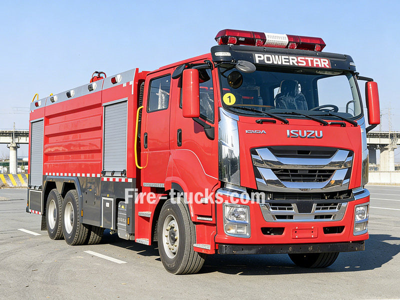 Le camion de pompiers Isuzu GIGA 6x4 est un engin de lutte contre l'incendie spécialement conçu pour éteindre les feux d'hydrocarbures et de liquides inflammables. Il intègre des systèmes de stockage, de dosage et de pulvérisation de mousse liquide.