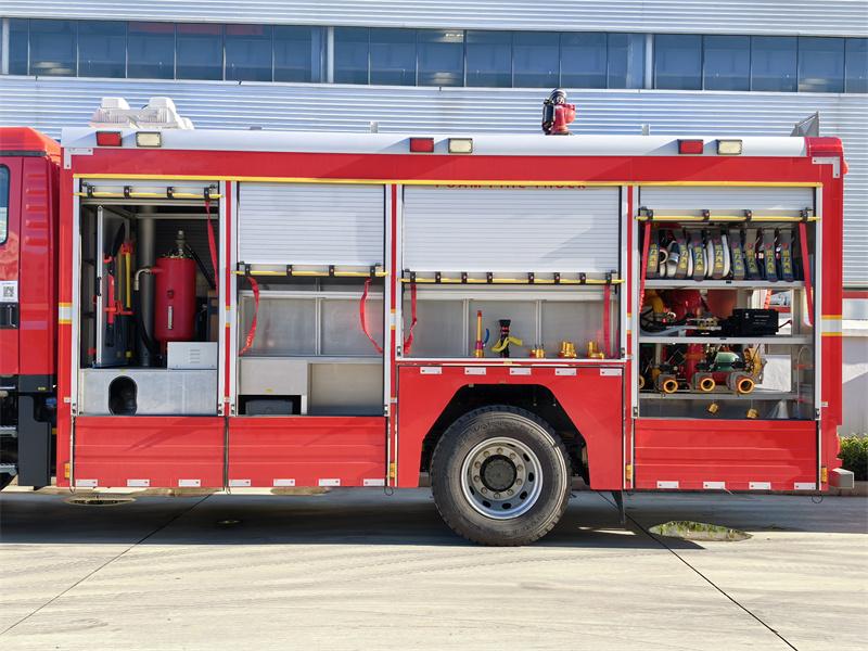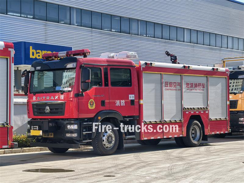 Le camion de secours incendie Sinotruk 6 CBM CAFS est une version modifiée du châssis Sinotruk C5H, avec un empattement de 4 700 mm. Il est équipé d'un moteur Sinotruk MC07H.35-60, d'une boîte de vitesses rapide à 8 rapports, et dispose d'une citerne d'eau de 5 m³, d'une citerne à mousse de type A de 350 kg et d'une citerne à mousse de type B de 550 kg. Ce véhicule est équipé d'une pompe à incendie haute performance, d'un canon à eau et d'un système CAFS, et est facile à utiliser. Il peut être utilisé pour des missions de secours d'urgence complètes telles que la lutte contre les incendies, la reconnaissance, la démolition, le sauvetage, l'éclairage et la protection.