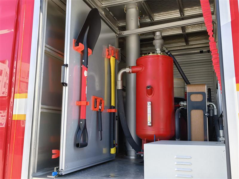 Système de réservoir : Réservoir d'eau en acier au carbone de 5 mètres cubes, contenant au total 900 kg de mousse liquide en acier inoxydable (350 kg de mousse de type A et 550 kg de mousse de type B), répondant aux besoins d'extinction d'incendies de haute intensité à long terme.