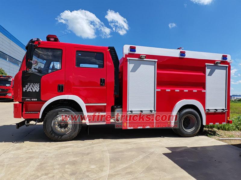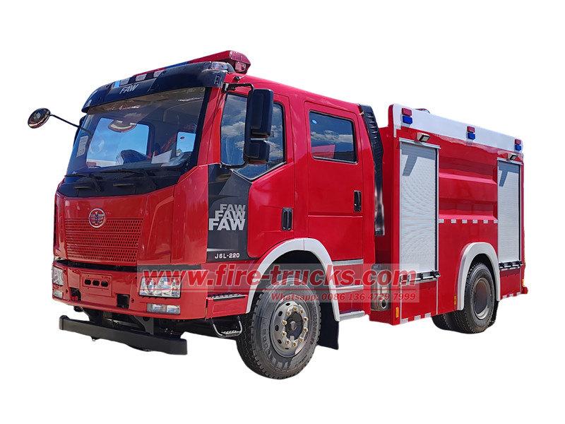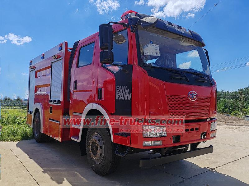 4×4, RHD, PP tank is optionalLe Camion de pompiers à mousse POWERSTAR FAW Il s'agit d'un véhicule d'intervention d'urgence spécialisé, modifié sur un châssis FAW 4×2 de poids moyen. Sa fonction principale est d'éteindre les incendies en pulvérisant un mélange air-mousse pour isoler les matériaux en combustion de l'oxygène. Il est particulièrement adapté aux incendies de pétrole, aux installations pétrochimiques, aux ports, aux docks et autres situations similaires.